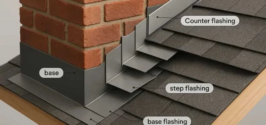 Step flashing tucks under each shingle course along the chimney sides. Counterflashing locks into mortar joints and overlaps those steps. In Edenbridge-Humber Valley, Etobicoke the overlap must be precise to block wind-driven rain. We avoid shortcuts like exposed face-nailing that can loosen and leak later.