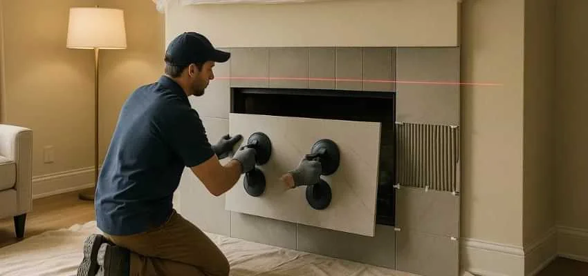 A face refresh changes the mood without a full rebuild. We select heat capable backers, keep joints tight, and align courses carefully so textures read clean from across the room in Edenbridge-Humber Valley, Etobicoke.